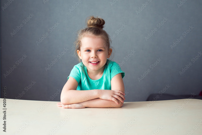 cute smiling girl sitting table