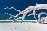 White driftwood tree on amazing Whitehaven Beach with white sand in the Whitsunday Islands, Queensland, Australia