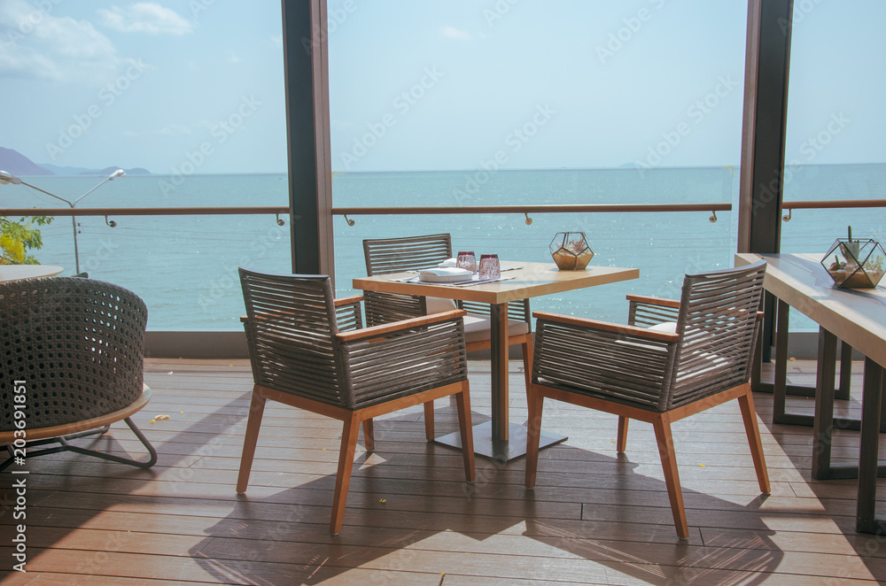 Restaurant chairs by the sea