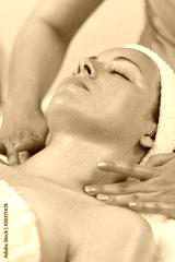 Young Woman Having Facial Treatment or Massage at Health Spa