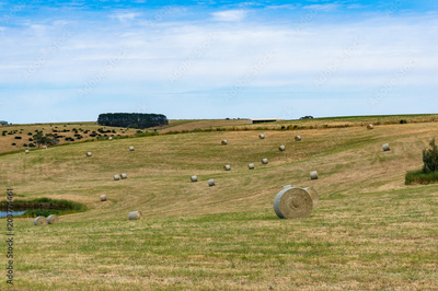 Large round bales of straw on a field