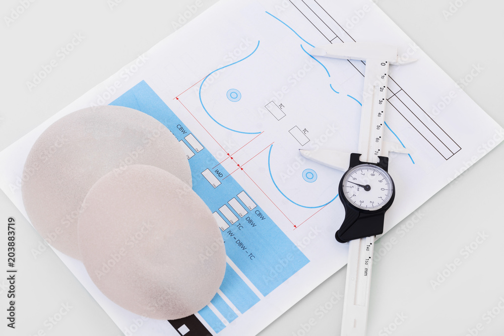 Determination of the correct size of the silicone breast. concept of plastic surgery