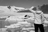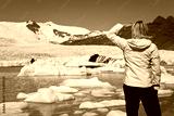 Environmental Concept Woman Hiker Looking At Melting Glacier