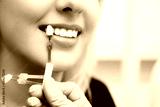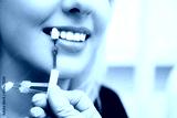 Beautiful smile and white teeth of a young woman. Matching the shades of the implants or the process of teeth whitening.