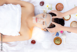 Massager massage on her head, make beautiful woman relieve stress from work and makes her feel relaxed. Attractive beautiful lady love massage, aromatherapy at spa shop. It has nice smell from herbs