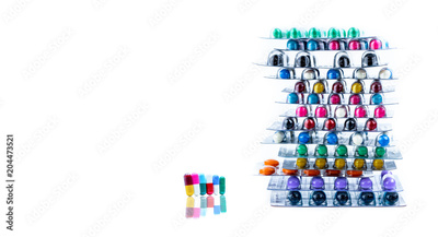 Stacks of antimicrobial capsule pills in blister packs. Pharmaceutical market. Antibiotic drug resistance. Pharmaceutical industry. Healthcare budgets concept. Drug pricing. Drug use with reasonable.