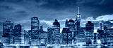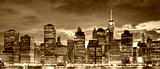 Black and white panoramic picture of Manhattan skyline at night, New York City, USA.