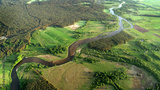 Natural river drone photo taken in spring - Poland