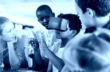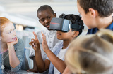 Boy using virtual goggles