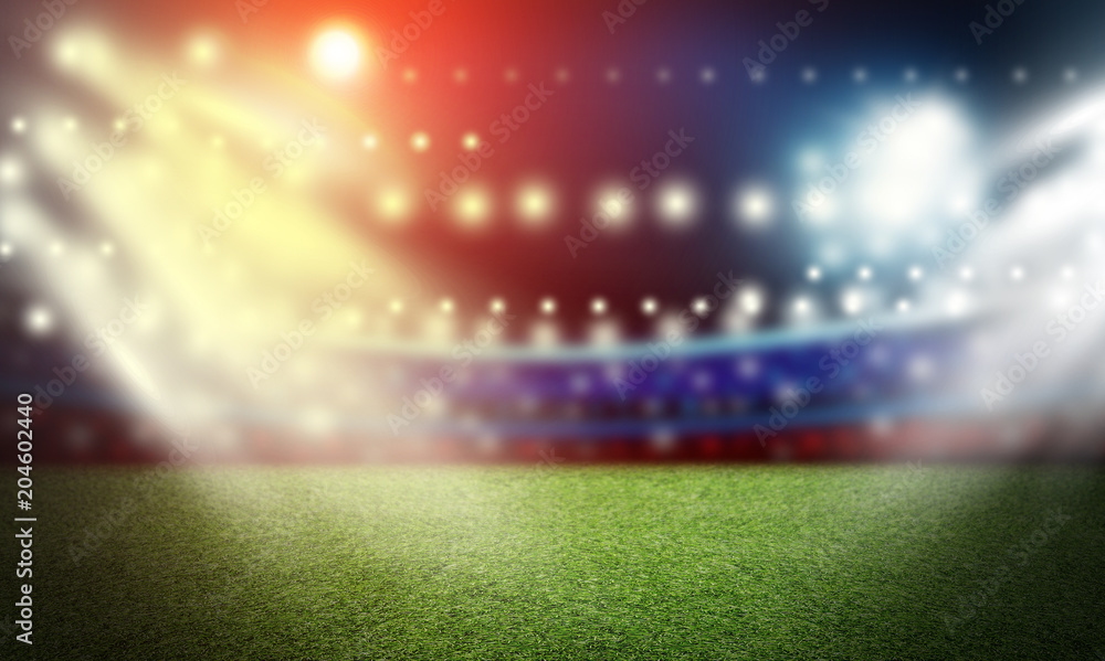 Soccer field and spotlight background in the stadium