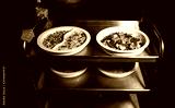 Waiter with a food serving cart at a vegetarian restaurant, close-up