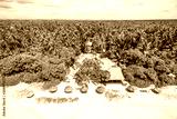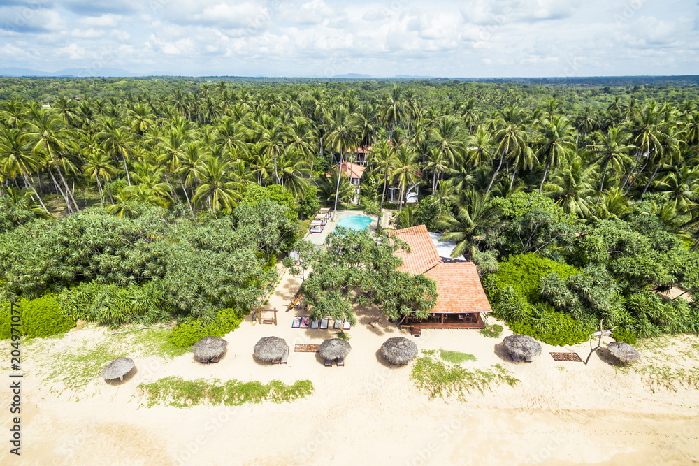 Aerial view of tropical beach with lonely hotel in Sri Lanka