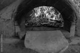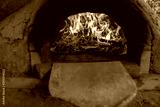 Pizzas cooking in stone and cob pizza oven