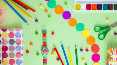 Creativity concept set of color objects top view