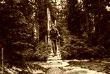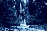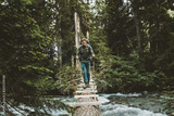 Man Traveler crossing river on log bridge outdoor survival Lifestyle Travel concept adventure vacations wild forest wanderlust