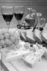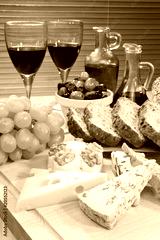 Cheese, Wine, Grapes, Olives, Bread, Balsamic Vinegar, Olive Oil