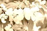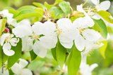 Blossom of white sakura flowers on a spring tree branch. Macro close up shot