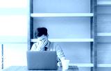 Charming handsome businessman get eyestrain frome radiation’s notebook computer. Attractive guy works so hard and work on laptop for long time. Handsome business man get fatigue from work. copy space