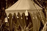 Oriental beauty. The tent on cushions. Aladdin lamp. smoking hookah. Fairy tale concept of the Arab harem or arabian night. East tale decoration