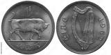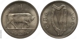 Ireland Irish coin one shilling 1962, bull right, Irish harp,