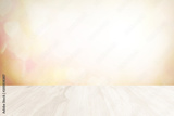Wood terrace white blurred and Christmas or focus design in happy holiday party. Vintage or Pastel spring lights include in surface and flare bright glow under sun at smooth plain texture background.