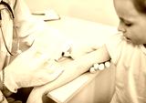 The doctor is a pediatrician in his office, he is taking a reception.