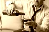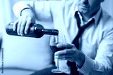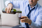alcoholism, alcohol addiction and people concept - male alcoholic pouring red wine to glass at home