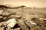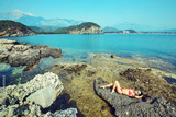 Young women is resting on the coral beach