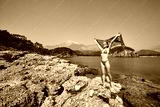 Freedom and carefree enjoyment girl enjoying life.