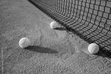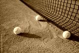 Tennis balls on tennis court.