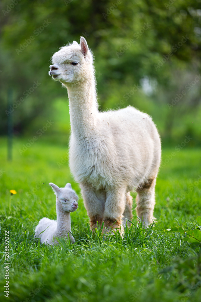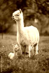 White Alpaca with offspring, South American mammal