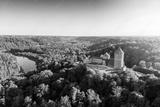 aerial view to the Turaida castle and river Gauja at sunset, Latvia