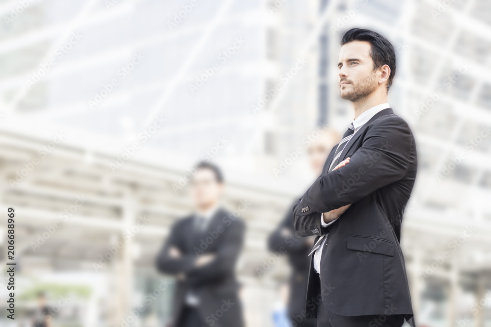 Potrait of bussinessman standing and looking forward, conceptas vission and hope to success