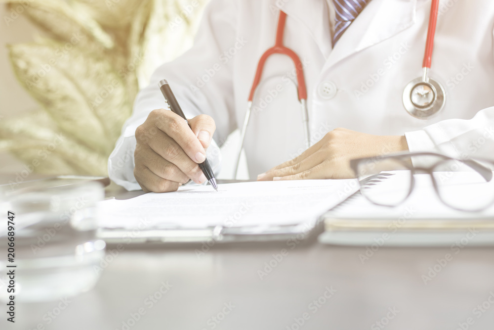 doctor writing information to patient on medicine paper in clinic for planning to take care good healthty