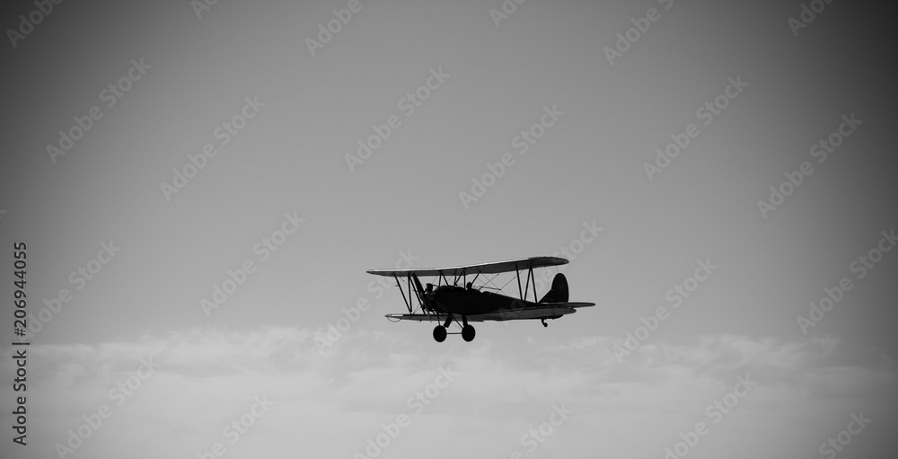 Day of the Air Fleet. Biplane in the sky, in the air