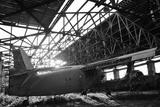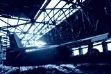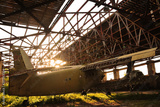 Old light aircraft in an abandoned hangar