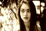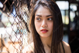 Portrait charming beautiful young girl: Attractive woman has nice face. Pretty asian girl has nice skin and looks healthy. Gorgeous woman feels relaxed and happy. She loves summer season, copy space