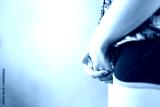 Handsome man is using his hands closing his penis. Attractive man gets painful of mind, he can’t has sex. He get erectile dysfunction. He feels unhappy and depressed. He feels shy and lost confident