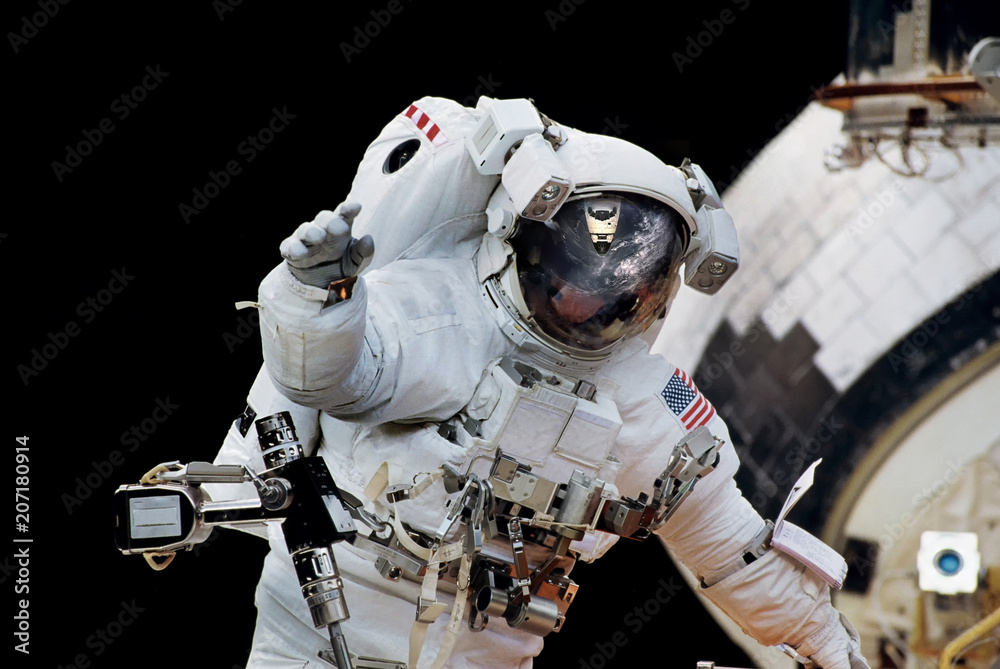 Close up of an astronaut waving hi to the camera.Elements of this image furnished by NASA.