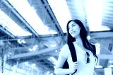 Charming beautiful woman has just arrived to her country. Attractive girl feels satisfied the airline that takes care her so well and the airline is punctual. Beautiful young lady get smile and happy