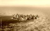 Aerial view of Doha through the morning fog - Qatar, the Persian Gulf