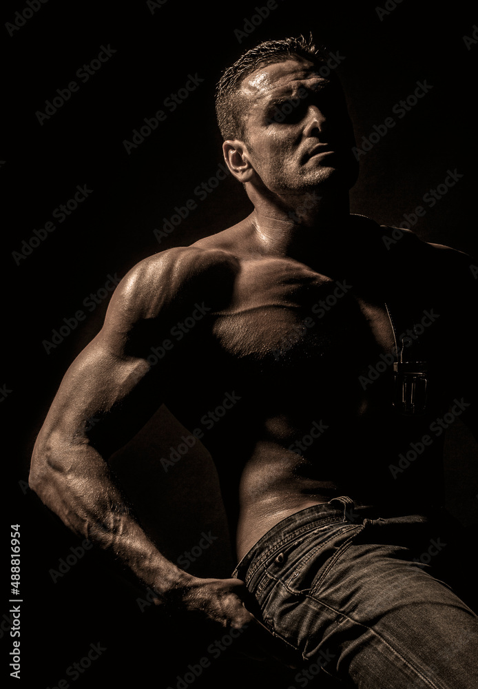 Italian pizza with ham, parma, arugula, parmesan, mozzarella lies on a wooden round board, on a white background