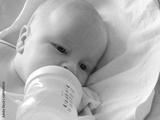 baby sucks a bottle, close-up