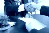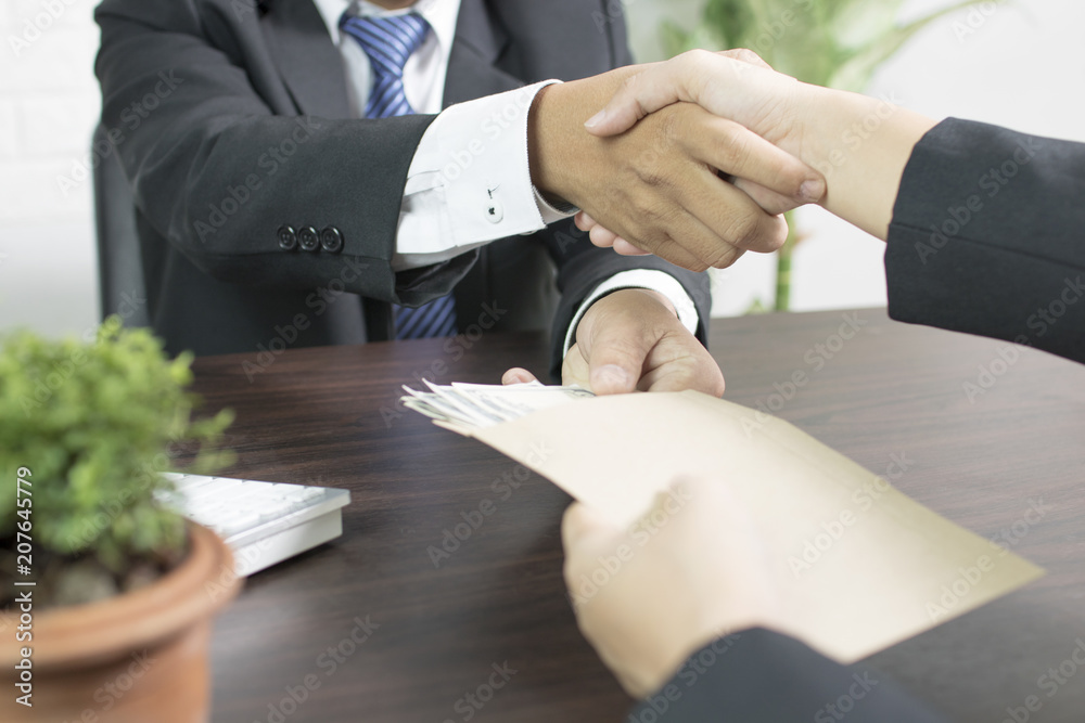 businessman corruption and shaking hand after finish meeting