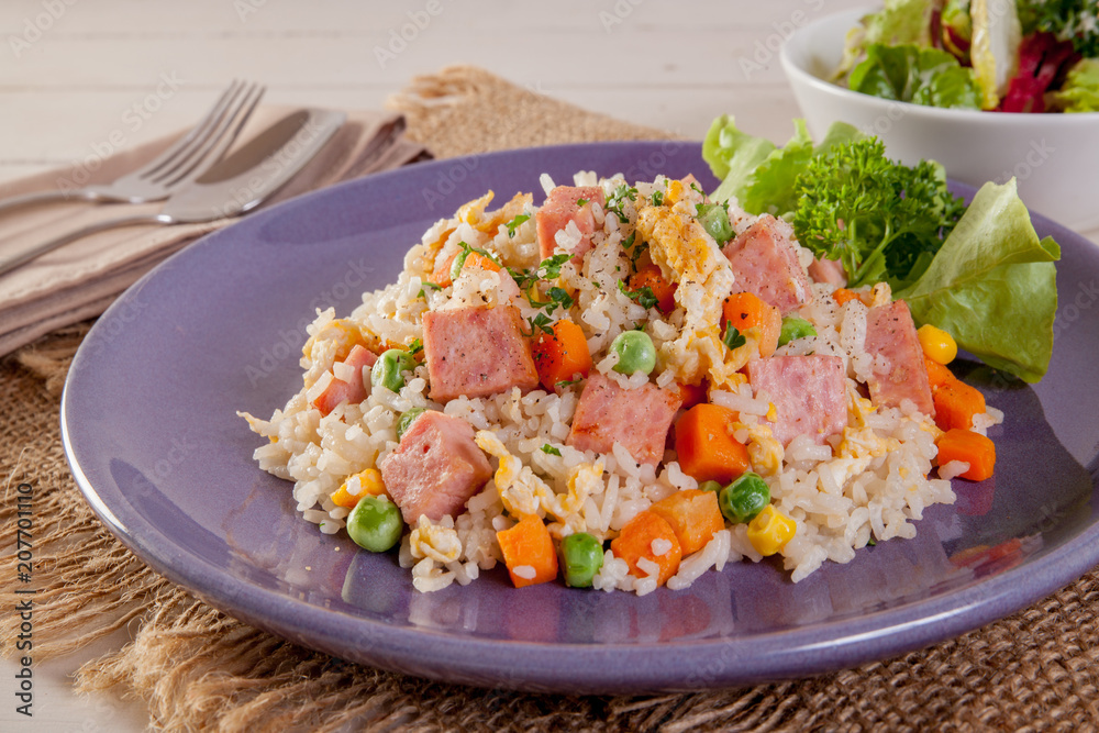 Fried rice with ham and egg