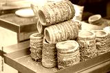 Trdelnik traditional Czech hot sweet pastry sold in the streets of Prague and another cities of Czech Republic. Czech cuisine and street food.