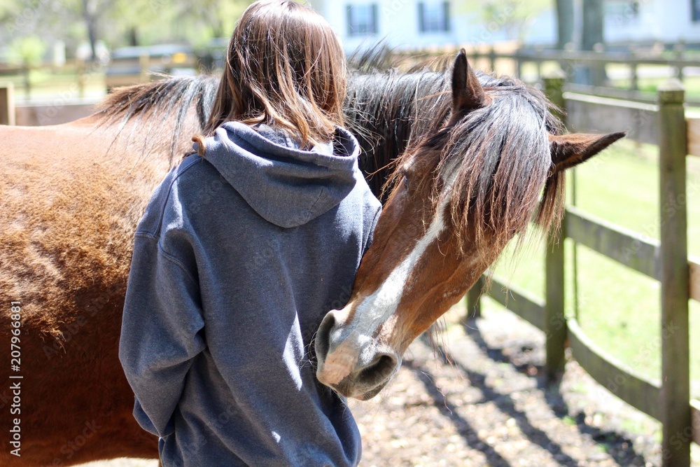Cute Horse Hugging Girl
