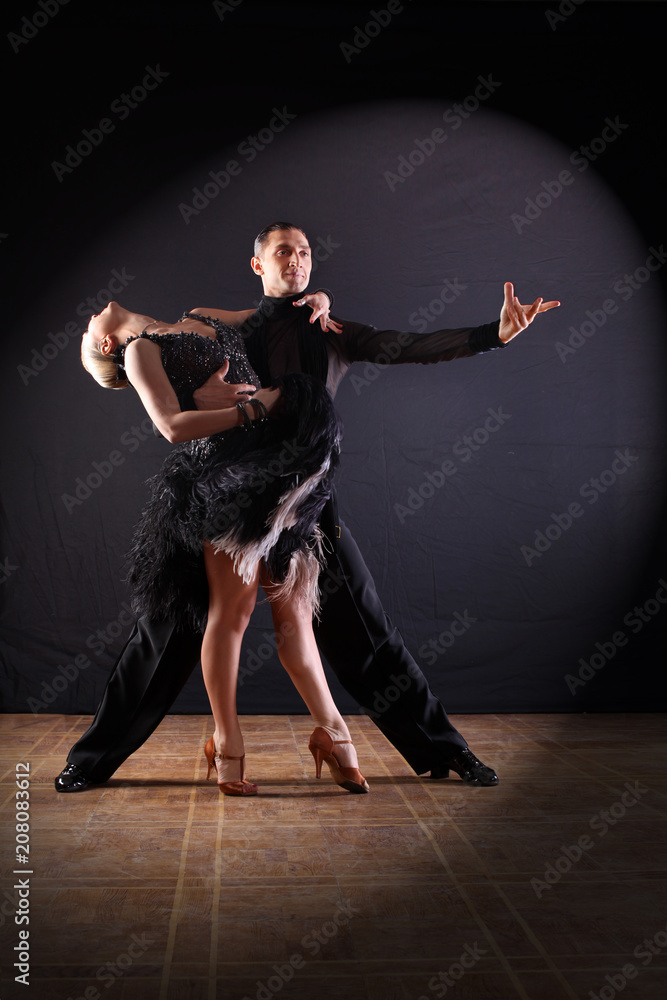 dancers in ballroom isolated on black background