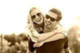 Man giving piggyback ride to woman