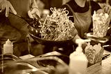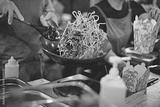 Cooking of street food. Customer service. Soft focus.